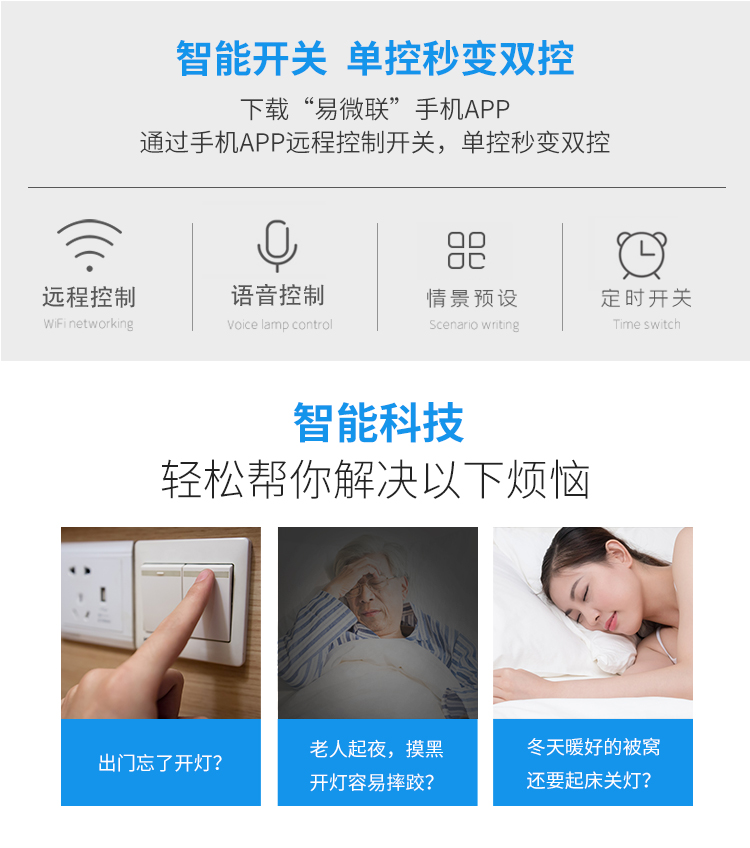 易微联单火线WiFi开关灯具手机远程开关墙壁86型 天猫精灵可控