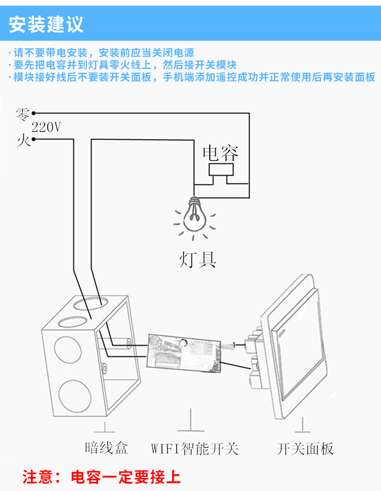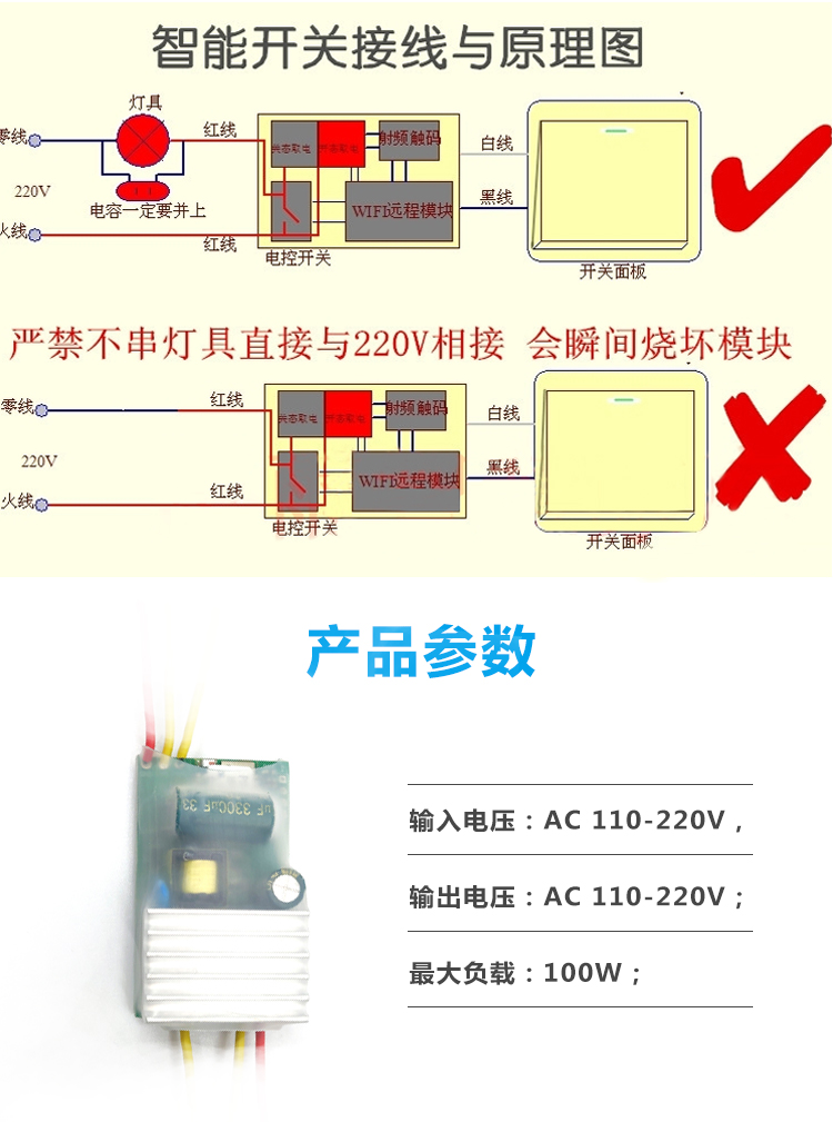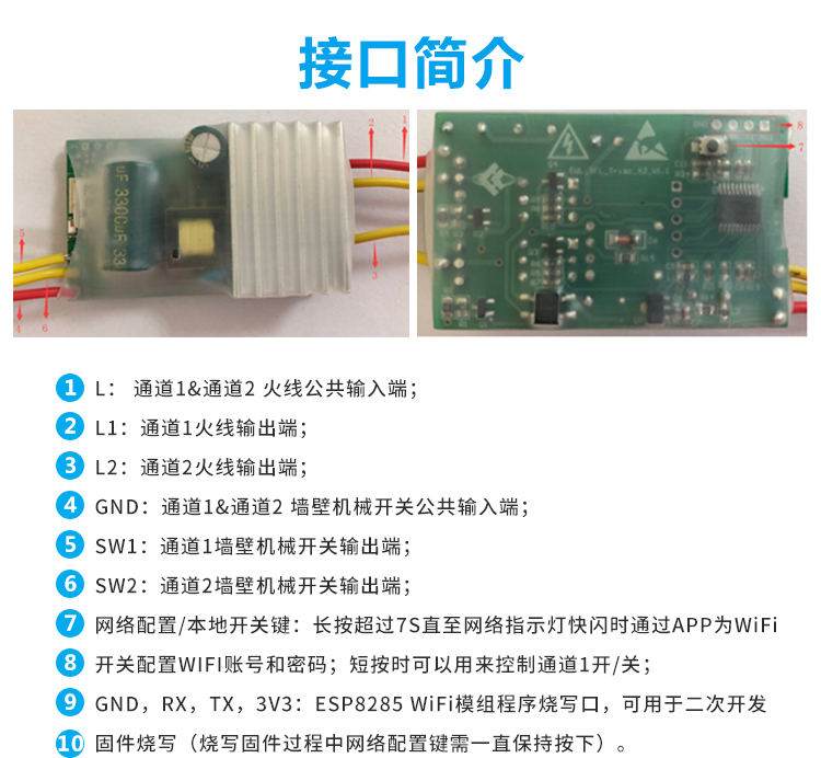 易微联WiFi双路单火线智能开关 改装件 可控硅 手机远程控制