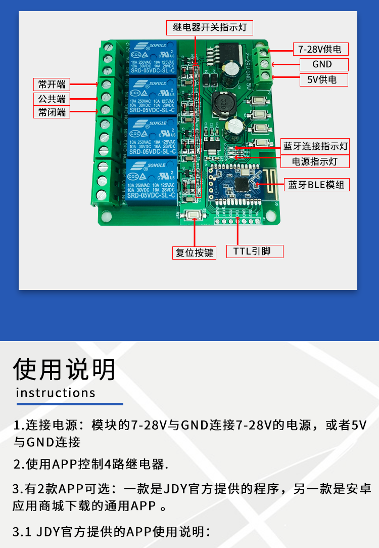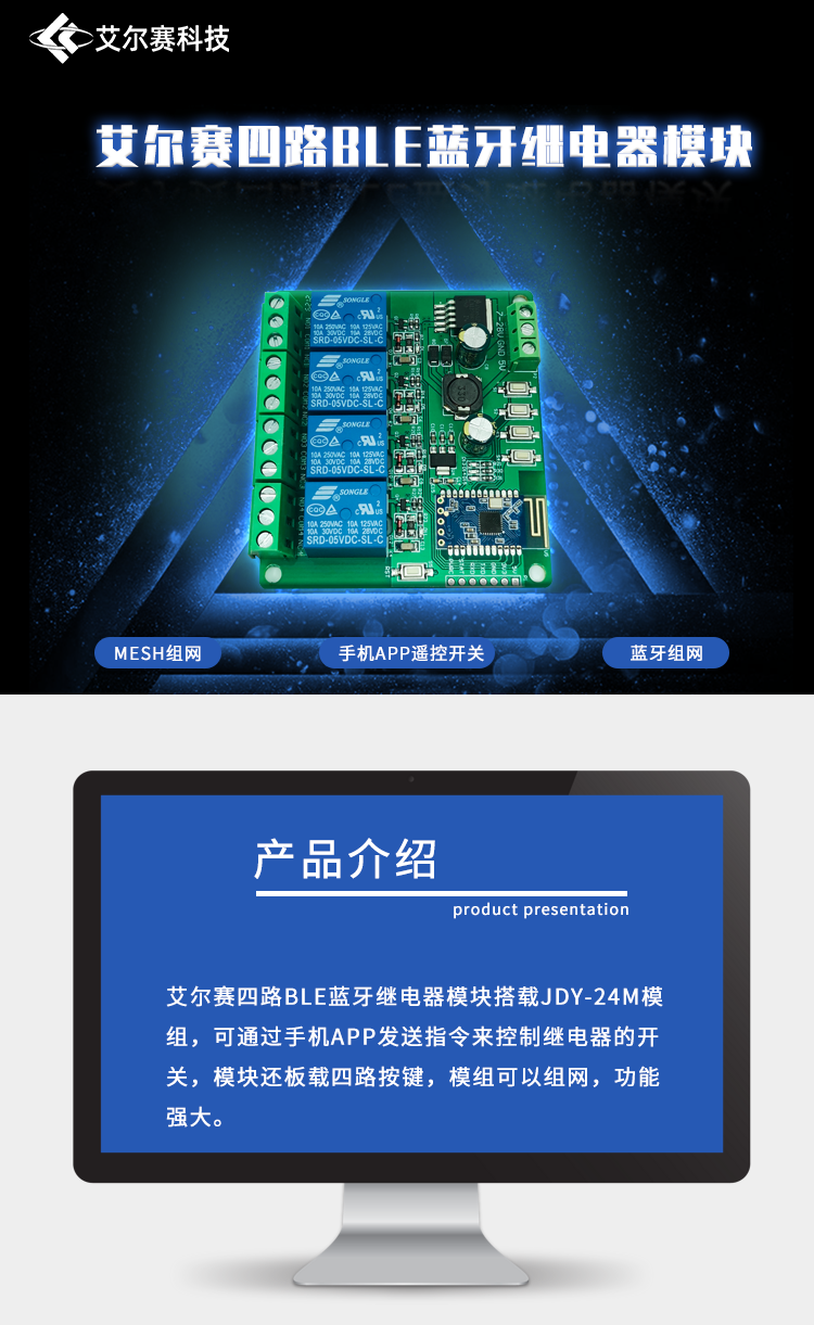 4路蓝牙5.0继电器 BLE蓝牙 蓝牙组网 MESH组网 手机APP遥控开关