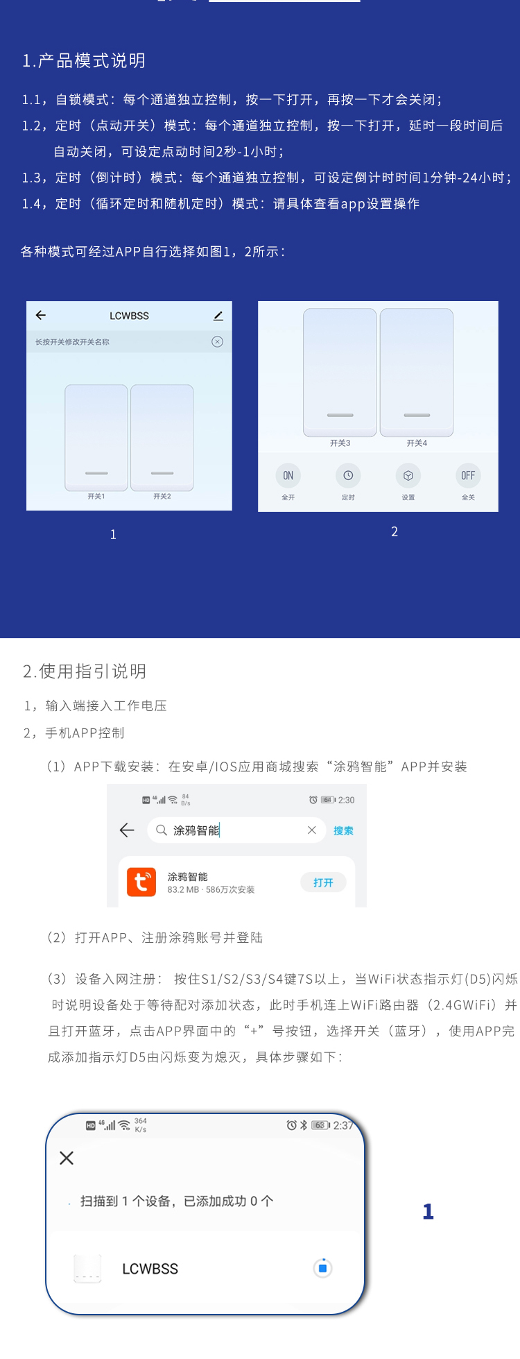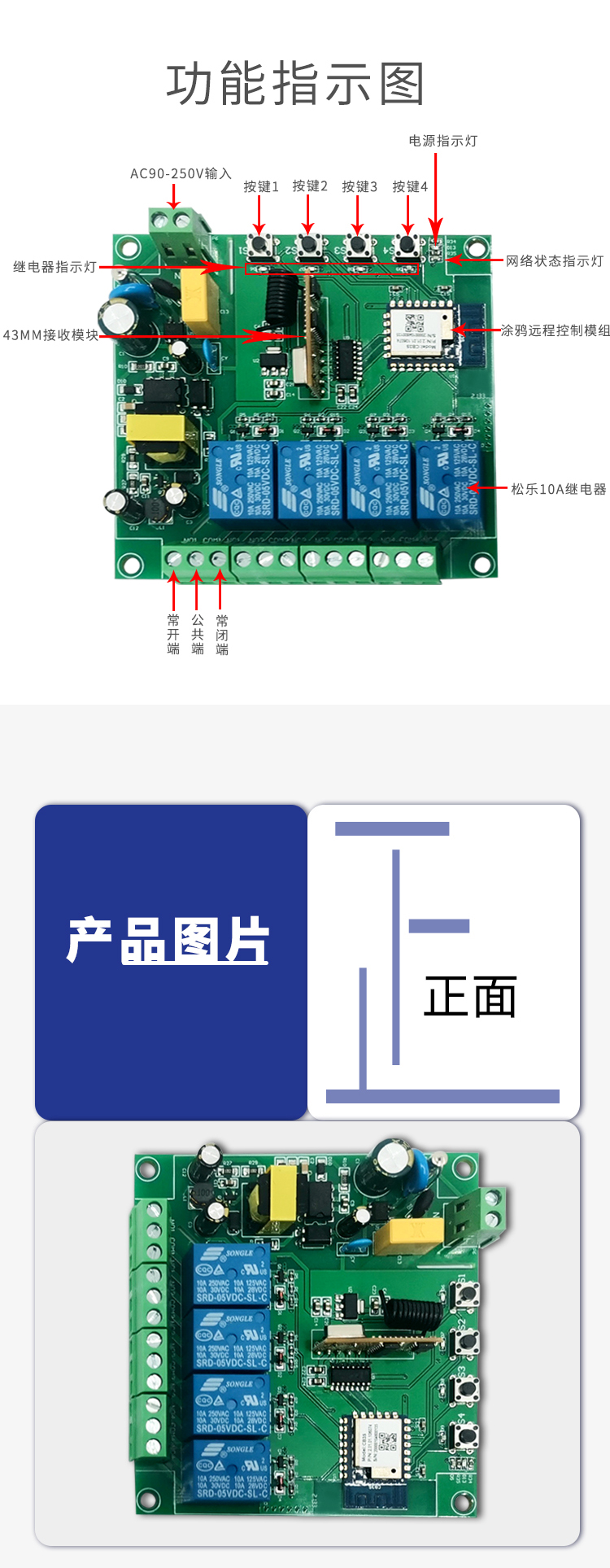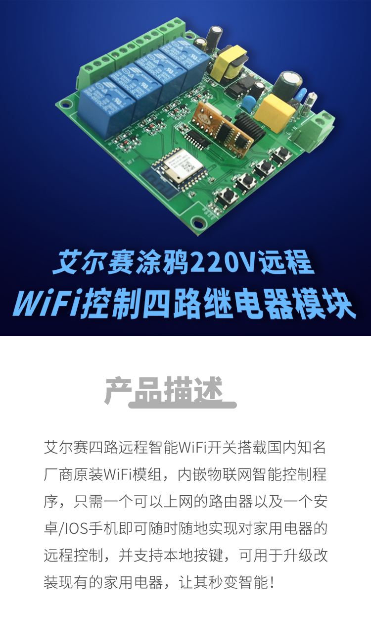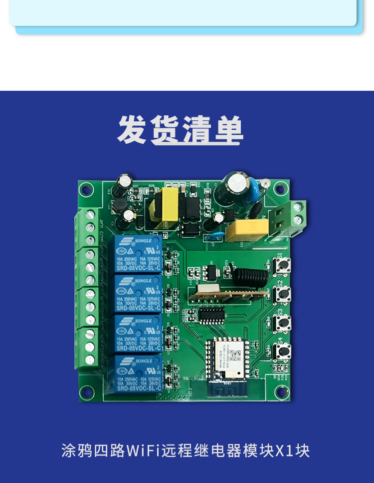 涂鸦(220V版本)远程四路继电器模块
