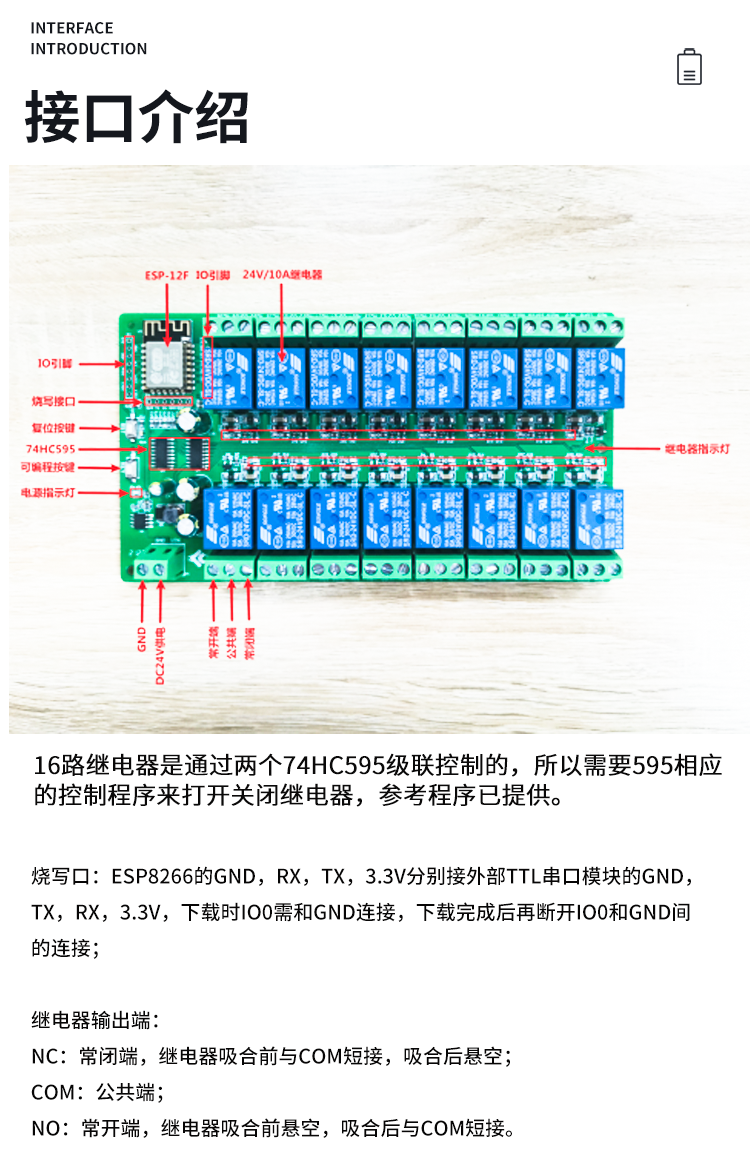 ESP8266WIFI十六路5V/12V/24v继电器模块