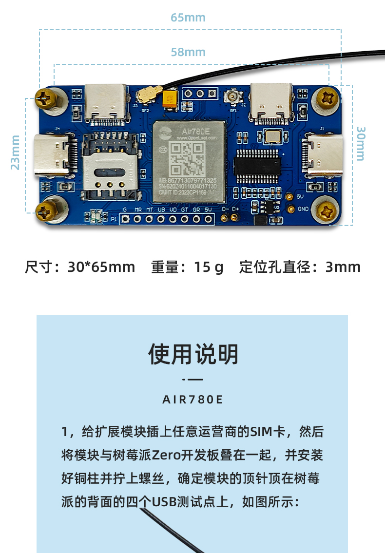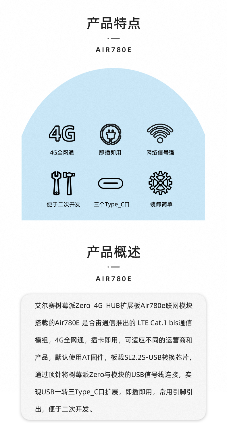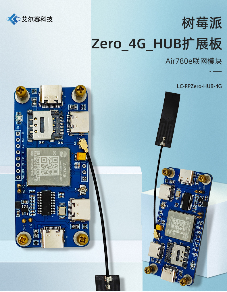 树莓派Zero专用4G HUB扩展板 Air780e联网模块4G CAT1 LTE以太网
