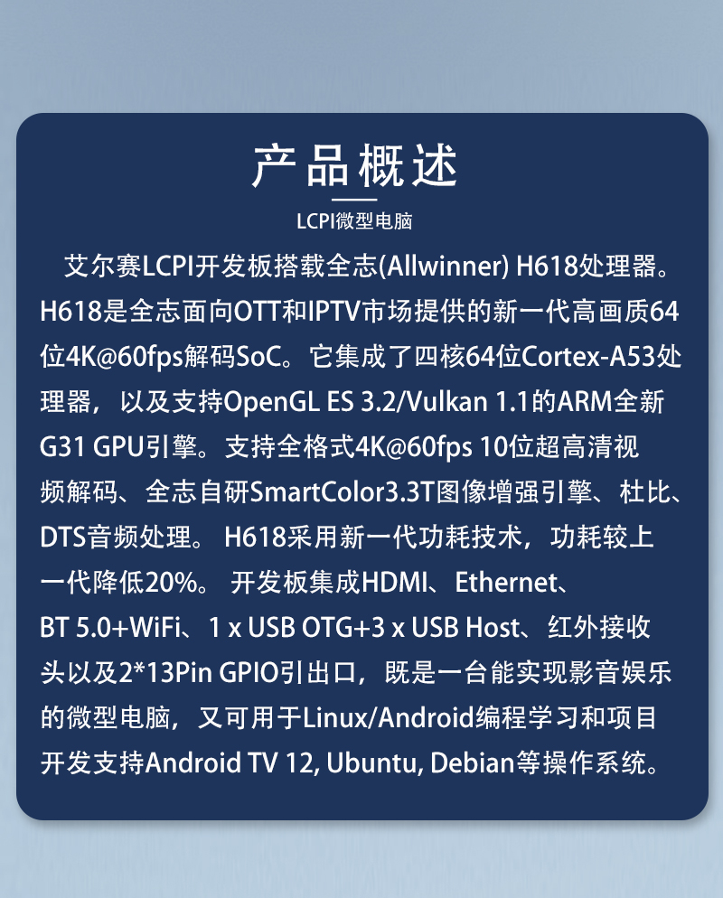 LCPI微型电脑 全志H618开发板ARM单片机Linux Android电视盒子