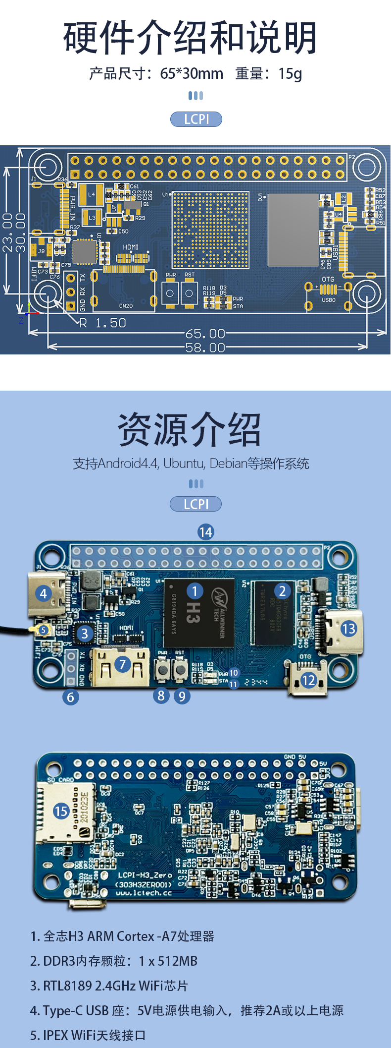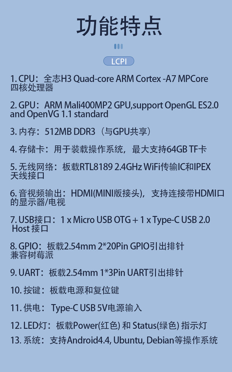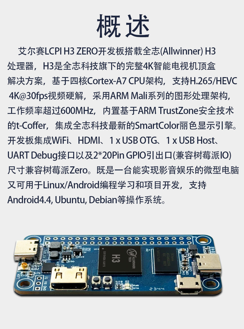 LCPI全志H3 Zero开发板安卓/Ubuntu/Linux 开源编程四核ARM学习板