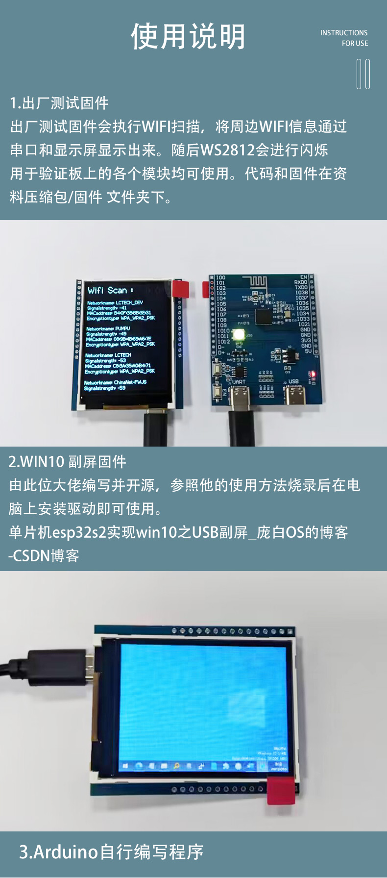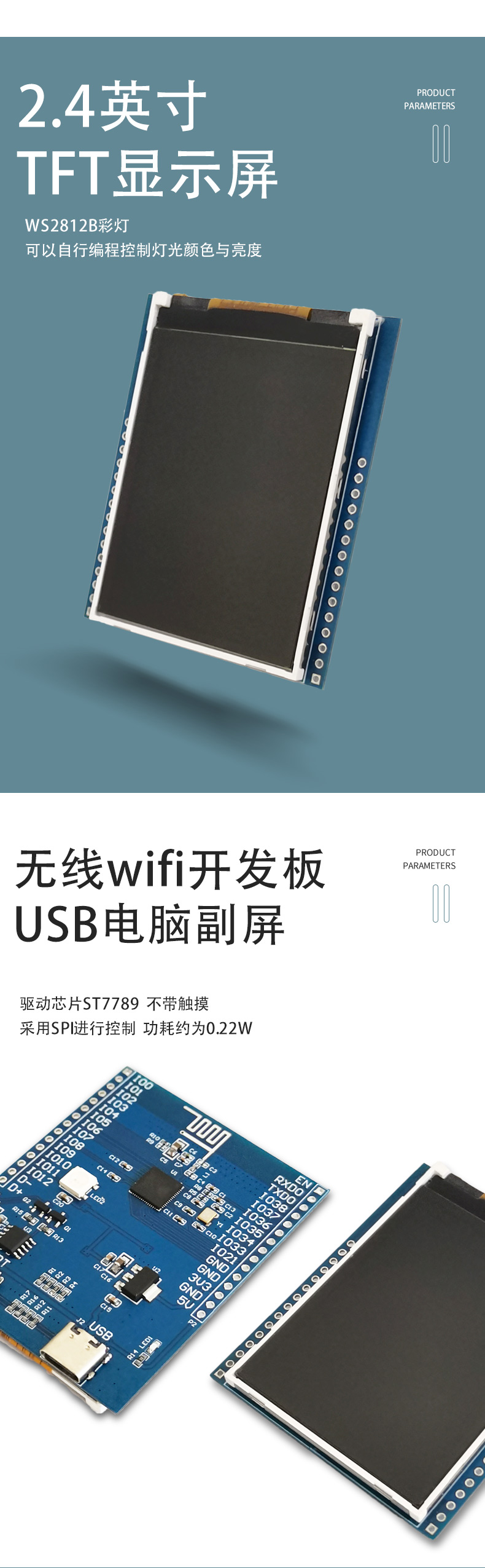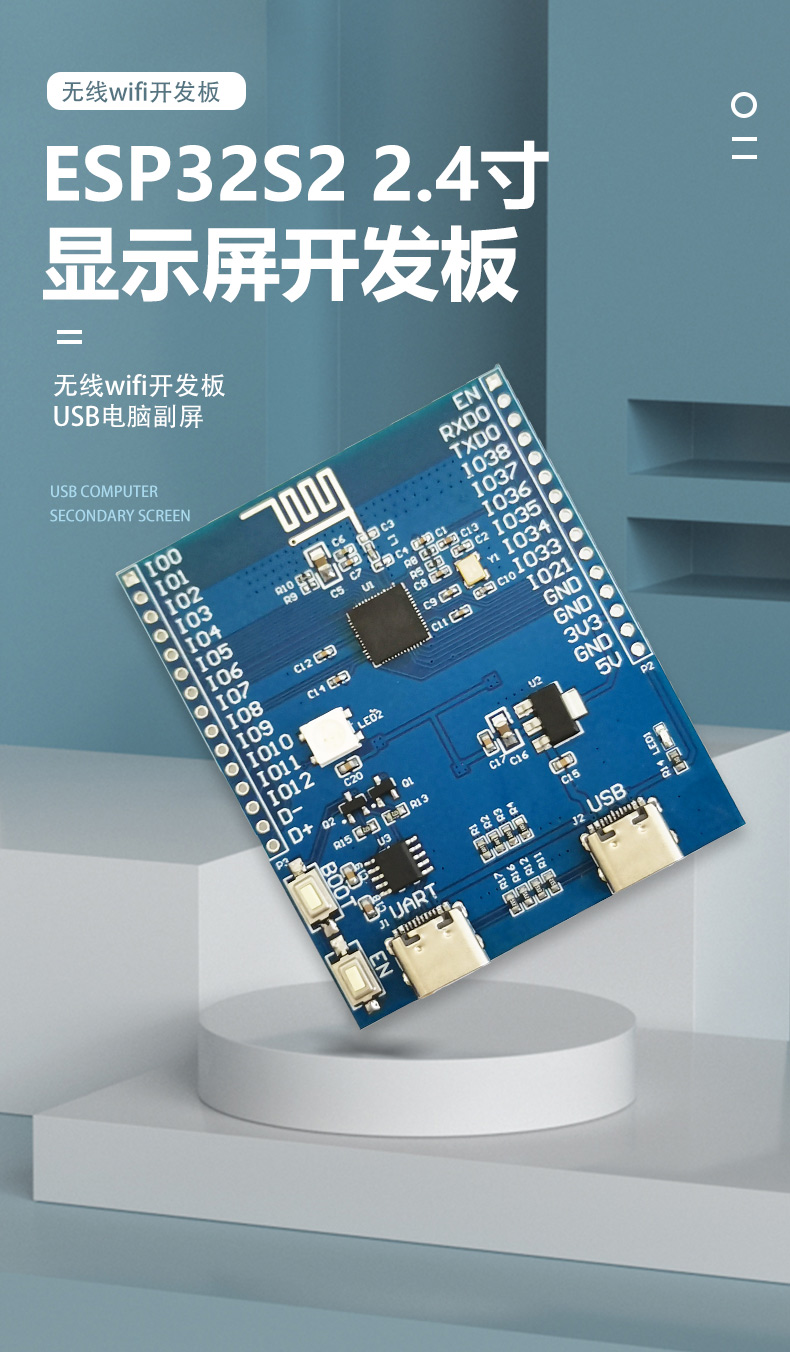 ESP32S2 2.4寸240x320显示屏 开发板 无线wifi开发板 USB电脑副屏