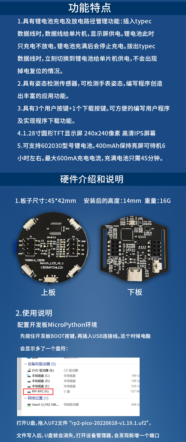 1.28寸圆形手表开发板 树莓派Rp2040开发板 TFT显示屏