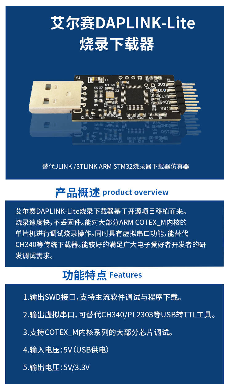 DAPLINK-Lite 烧录下载器 替代JLINK /STLINK 下载器仿真器