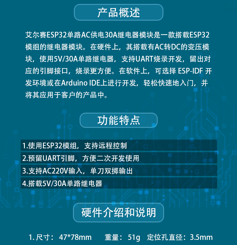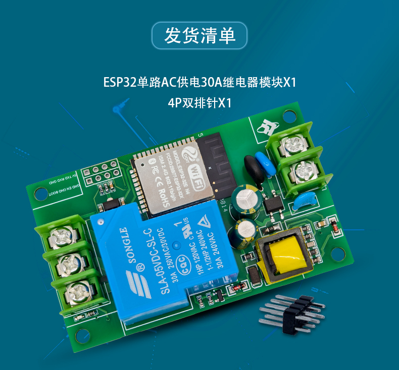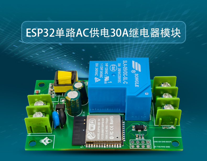 ESP32单路AC供电30A继电器模块 WiFi蓝牙二次开发板 不带电压输出